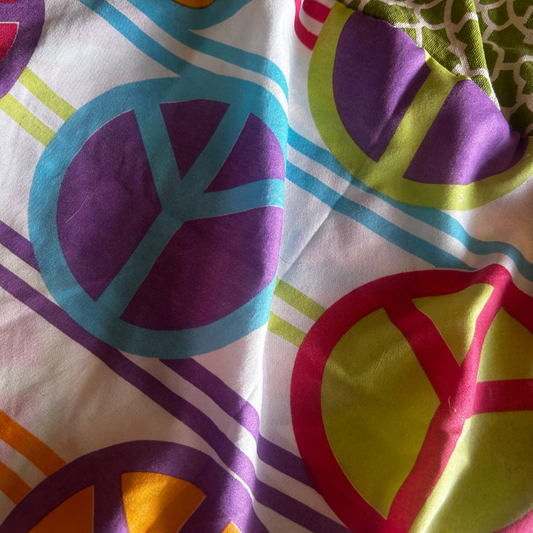 π Funky Peace Patch Pants β Reworked Minky + Vintage Sheets | One-of-a-Kind | Handmade in Arizona