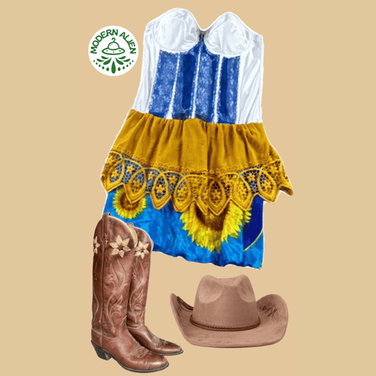 Sunflower Corset Midi Dress β Handmade & Upcycled