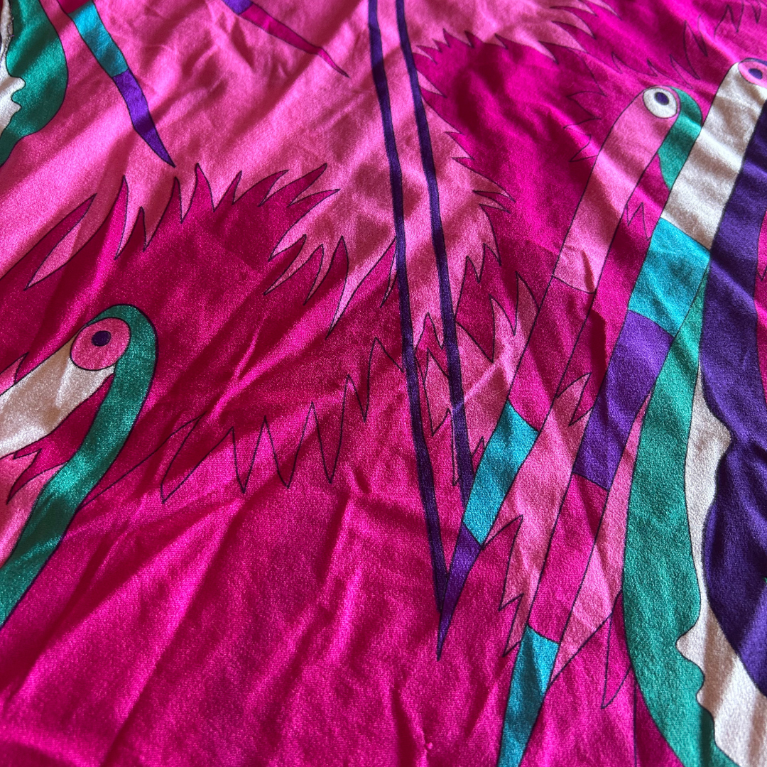 This isn’t your average crop top — it’s a wild burst of color and texture. Handmade from a rescued tapestry, this piece brings bold flamingo graphics, electric pink, and tropical chaos into wearable form. It’s crafted with love and intention in Holbrook, AZ, where forgotten fabrics get a new life.