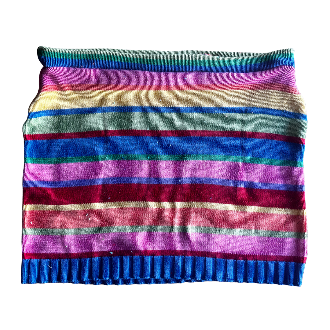 This bold and funky two-piece set started as an “ugly” striped sweater and got a full-blown alien makeover. Featuring a halter-style knit bikini top and matching mini skirt, this colorful duo is comfy, stretchy, and perfect for layering or lounging. Whether you're headed to a music fest or just feeling yourself at home, this is sweater weather reimagined.