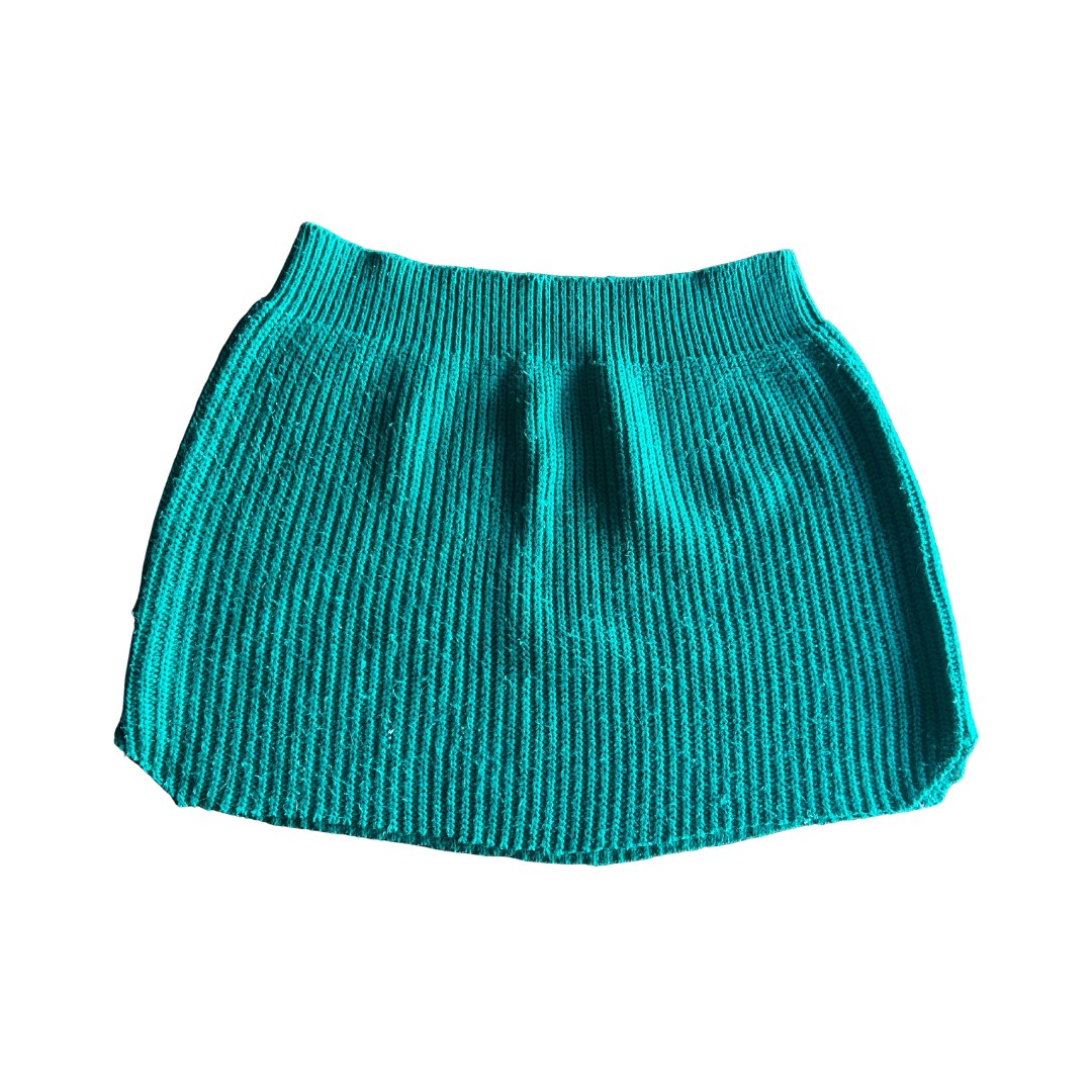 This bold teal mini skirt was reimagined from a chunky knit sweater and turned into the comfiest, cutest closet essential. With its ribbed texture and flattering fit, this skirt is perfect for cozy layering or showing off your funky side all year long.