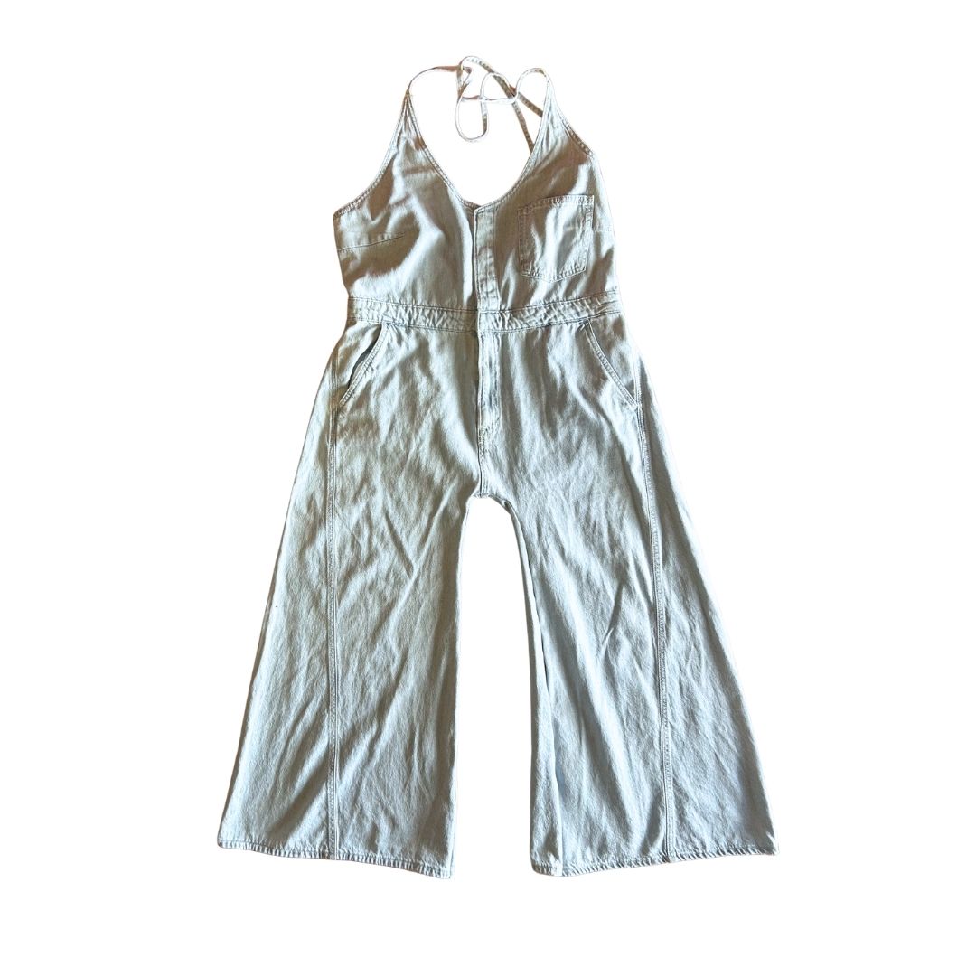 Say hello to your new go-to: this wide-leg denim jumpsuit was handmade from a reimagined vintage dress and turned into a full-body vibe. With a low back, criss-cross straps, and laid-back structure, this piece feels like freedom and looks like desert funk deluxe.